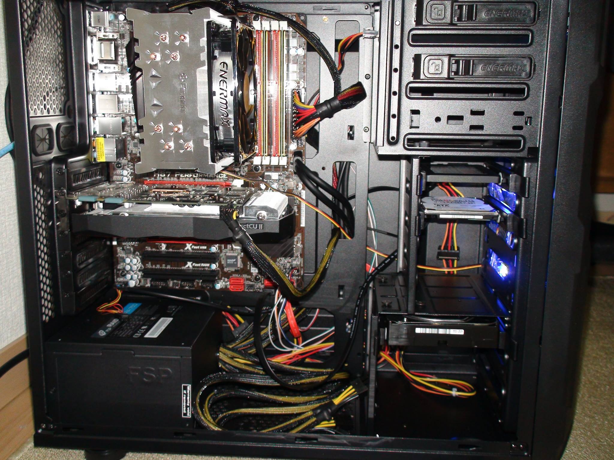 - 電源:RAIDERの750W電源 レンダリングするために大学行く間もつけっぱ。すると某月の電気代が7,500円という快挙(一人暮らしですがなにか)